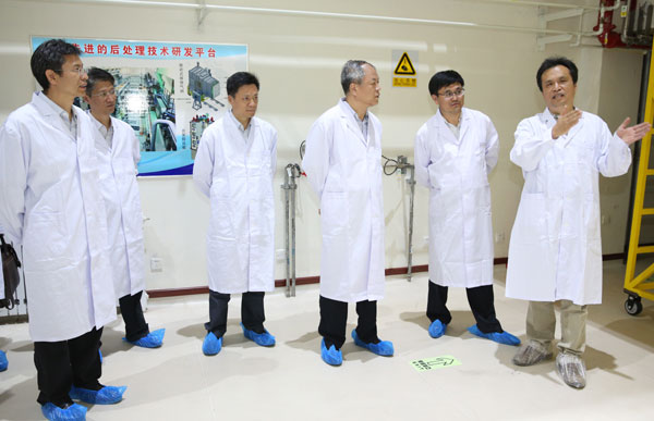 ????7月4日,國(guó)家能源局副局長(zhǎng)李仰哲帶隊(duì)赴中核集團(tuán)中國(guó)原子能科學(xué)研究院調(diào)研,了解我國(guó)核工業(yè)發(fā)展和原子能院科研生產(chǎn)等情況。 ????李仰哲一行參觀了核工業(yè)60周年成就展,察看了中國(guó)實(shí)驗(yàn)快堆、核燃料后處理放化實(shí)驗(yàn)設(shè)施以及100MeV質(zhì)子回旋加速器,并與中核集團(tuán)負(fù)責(zé)同志就核能基礎(chǔ)科研、核技術(shù)應(yīng)用、核電發(fā)展等進(jìn)行了座談。 ????國(guó)家能源局核電司、核電發(fā)展中心主要負(fù)責(zé)同志參加調(diào)研。 |