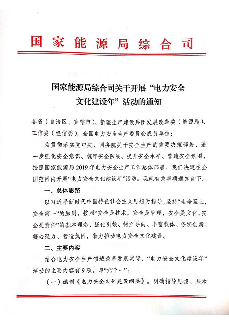 國家能源局綜合司關(guān)于開展“電力安全文化建設(shè)年”活動的通知