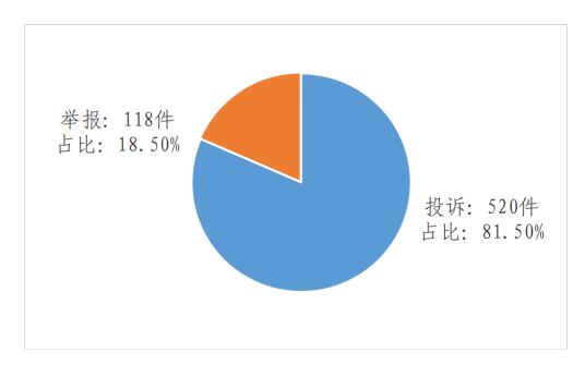 圖二 2023年5月辦結(jié)投訴舉報分布圖 從被投訴舉報對象看,供電企業(yè)530件、占投訴舉報總數(shù)的83.07%,其中國家電網(wǎng)公司396件、占投訴舉報總數(shù)的62.07%,南方電網(wǎng)公司60件、占投訴舉報總數(shù)的9.40%,地方電力企業(yè)74件、占投訴舉報總數(shù)的11.60%;承裝(修、試)電力施工企業(yè)108件、占投訴舉報總數(shù)的16.93%。