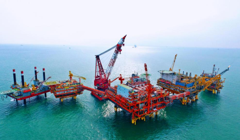 開平南油田勘探作業(yè)平臺現(xiàn)場 渤海首個大型整裝千億立方米渤中19-6凝析氣田一期開發(fā)項目順利投產,氣田累計探明天然氣地質儲量超2000億立方米、凝析油地質儲量超2億立方米,由我國自主設計、建造、安裝及生產運營,海上深層潛山油氣藏開發(fā)邁入新階段。渤海億噸級油田群墾利6-1油田群全面投產,日產原油突破8000噸,當年貢獻原油增量245萬噸。近年來,渤南、陸豐、流花、恩平等油氣田群成為海上油氣產量增長點,我國海上已建成渤海3000萬噸級、南海東部2000萬噸級兩個大型油氣生產基地。