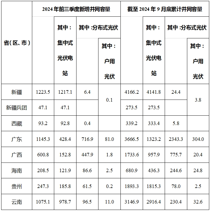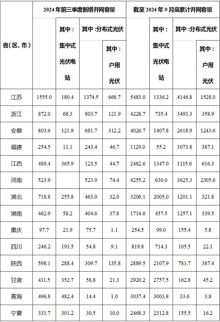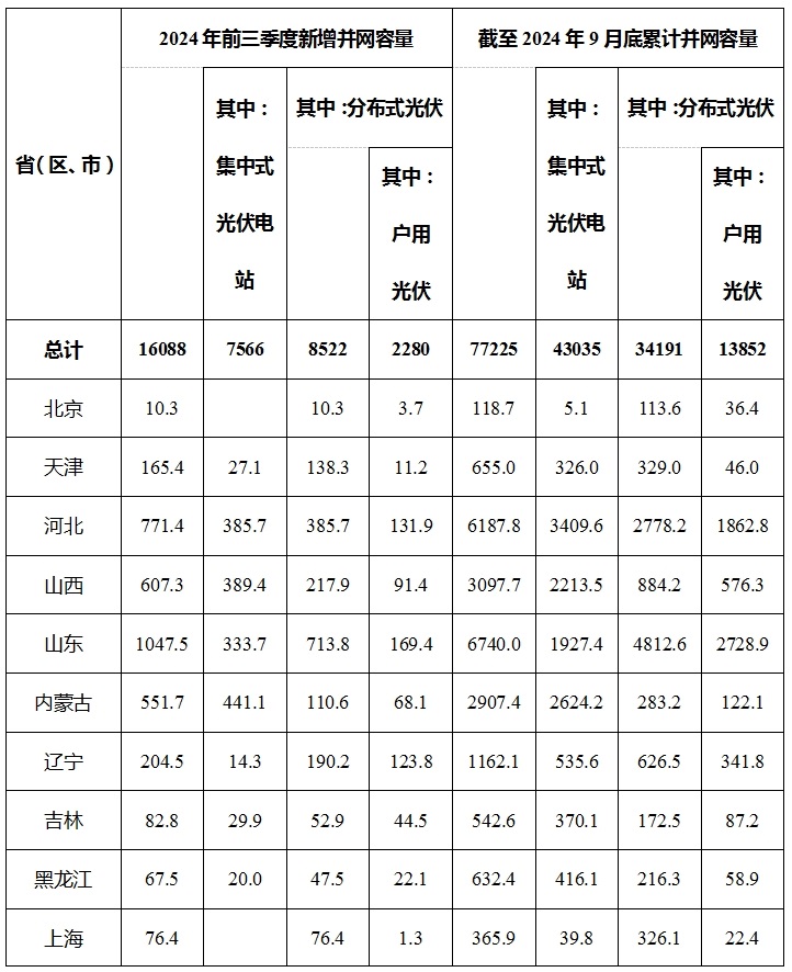 2024年前三季度光伏發(fā)電建設(shè)情況